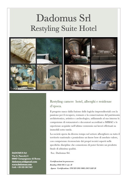 La qualità del progetto, la cura dei particolari, la qualità dei materiali e la tecnica specializzata sono gli elementi che rendono DADOMUS SRL punto di riferimento nel settore risultando estremamente affidabile e sicura. Le nostre opere sono il frutto di un impegno costante, passione e continuo aggiornamento tecnico e strumentale volte al miglioramento dello standard qualitativo dei nostri servizi e alla soddisfazione della clientela AFFIDABILITÀ , e professionalità delle maestranze.